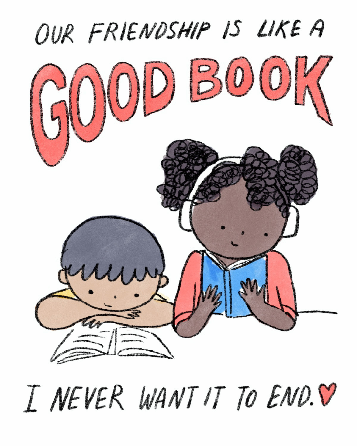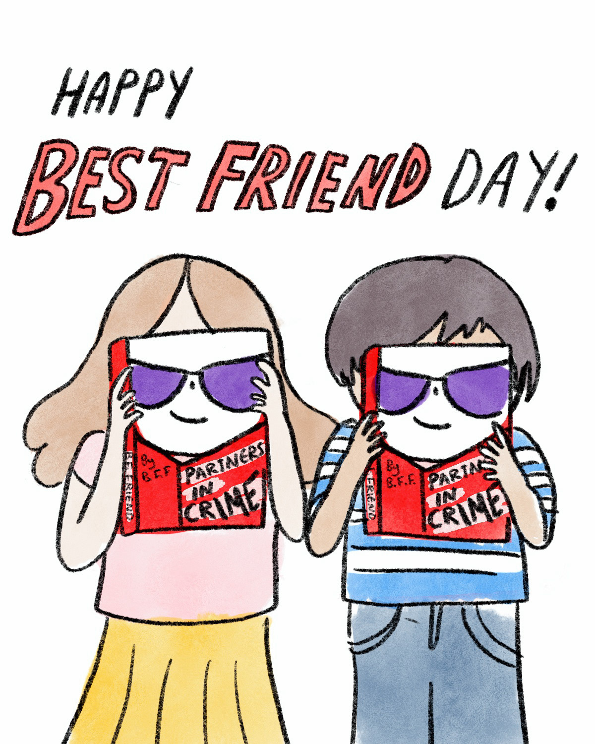 This series of illustrations was made for an instagram carousel for the Vancouver Public Library to celebrate best friend day at the library.